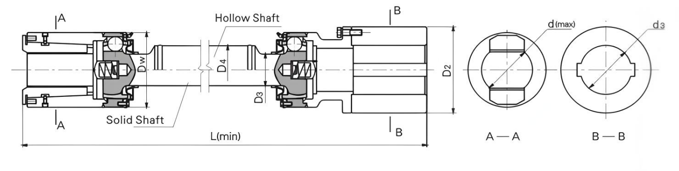 При работе вращение ведущего вала передается на ведомый вал через поперечный вал, что может обеспечить плавную передачу мощности даже при определенном угловом отклонении между двумя валами. Его телескопическая шлицевая пара позволяет гибко регулировать длину муфты в соответствии с требованиями эксплуатации оборудования и эффективно справляться со смещением оборудования, вызванным тепловым расширением и сжатием или изменениями положения установки.